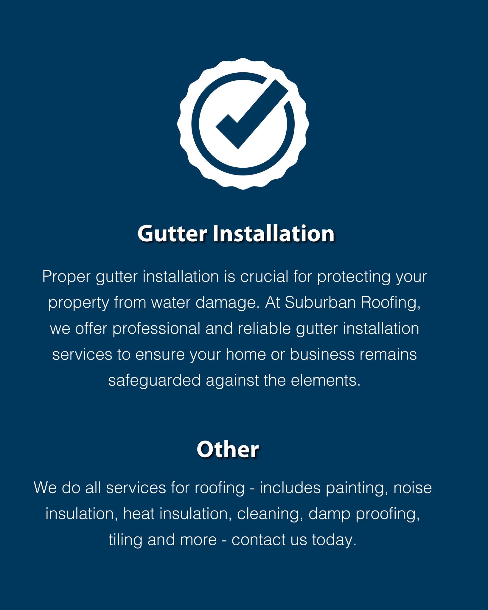 At Suburban Roofing Consultants, we offer a wide range of other roofing services to enhance both the functionality and aesthetics of your property. From expert gutter solutions and comprehensive roof cleaning to advanced heat and noise insulation, we ensure every aspect of your roofing needs is covered.