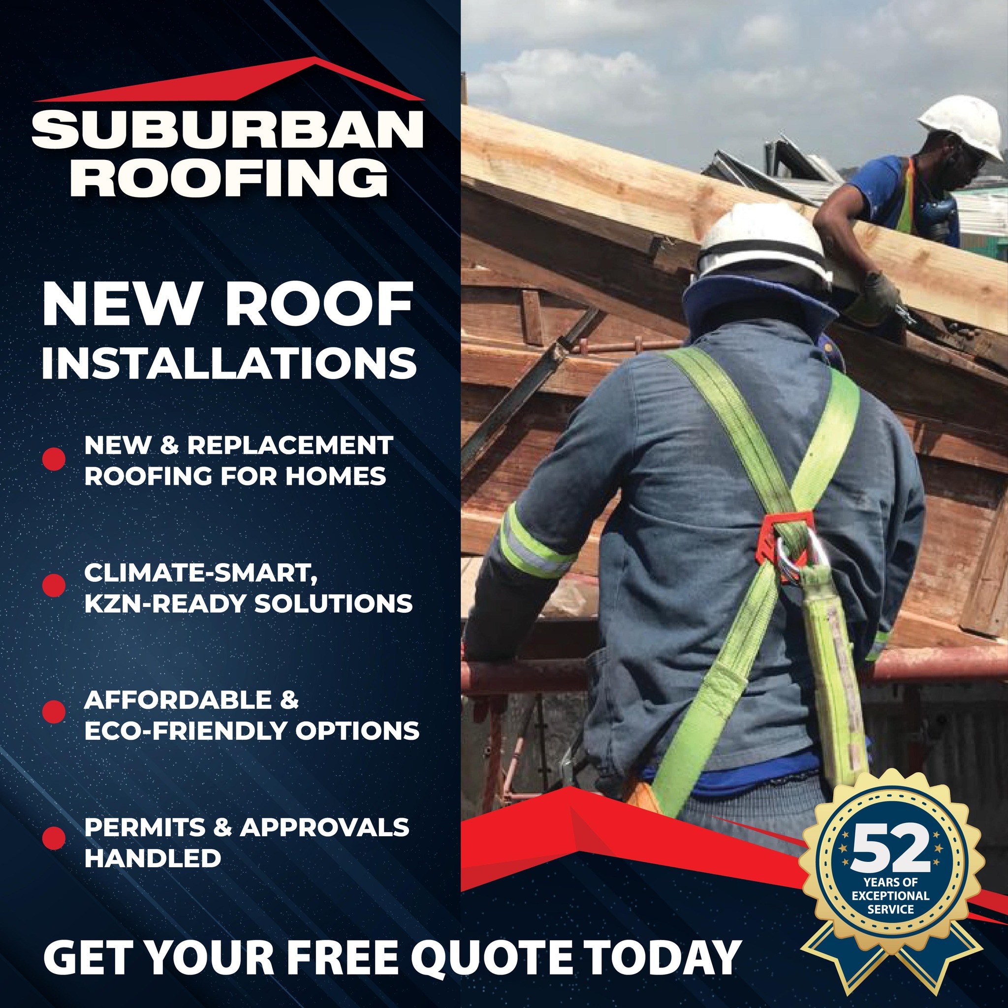 With 100% of our work being at heights, Suburban Roofing Consultants KZN (Pty) LTD is fully compliant with Construction Regulation 10 of the OHS Act.