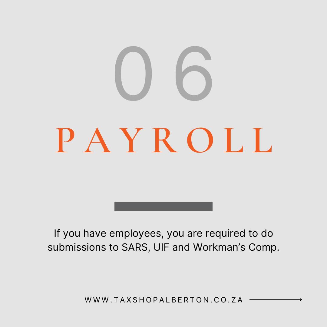 Our payroll experts manage all payroll requirements including communications with SARS, ensuring your business remains compliant.